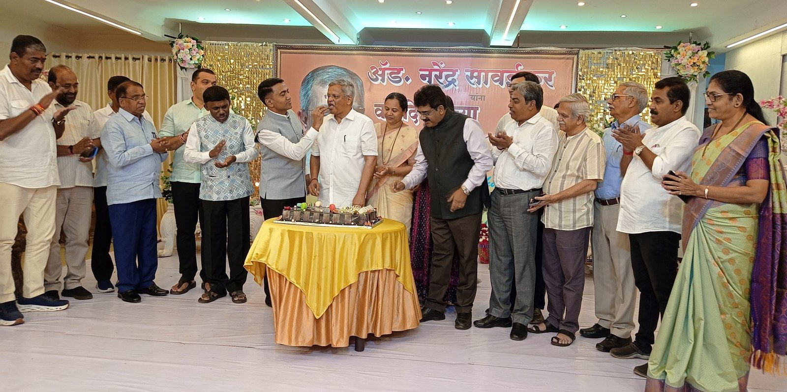 दक्षिण गोव्याचे माजी खासदार व प्रदेश भाजपाचे सरचिटणिस अॅड. नरेंद्र सावईकर यांचा वाढदिन सोहळा काल शुक्रवार 29 रोजी बेतोडा रोड, फोंडा येथील अॅग्रीबाजार संकुलाच्या ग्रँड सेलिब्रेशन सभागृहात थाटात साजरा करण्यात आला. पत्नी मेघना सावईकर व मुलगी ईशा सावईकर यांच्या उपस्थितीत वाढदिवसाचा केक कापण्यात आला. मुख्यमंत्री डॉ. सावंत, भाजपाचे प्रदेशाध्यक्ष तथा राज्यसभा खासदार सदानंद तानावडे, केंद्रीय पर्यटन राज्यमंत्री श्रीपाद नाईक यांच्यासह विविध खात्यांचे मंत्री, आमदार पक्षाचे पदाधिकारी, असंख्य कार्यकर्ते व हितचितकांनी या सोहळ्याला उपस्थित राहून सावईकर यांना शुभेच्छा दिल्या. सावईकर यांनी राजकीय, सामाजिक, सहकार अशा विविध क्षेत्रात आपल्या नेतृत्त्व गुणांच्या जोरावर व कर्तृत्त्वाची मोहोर उमटविली आहे. त्यांच्या पुढील राजकीय प्रवासात अजून मोठी पदे त्यांच्या वाट्याला येतील, अशा शुभेच्छा मुख्यमंत्री सावंत यांनी त्यांना दिल्या.