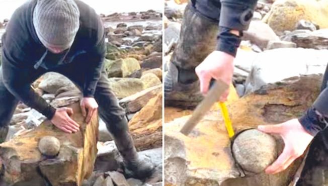 यॉर्कशायर : उत्खनन करताना अतिशय पुरातन, मौल्यवान वस्तू सापडल्याच्या अनेक घटना समोर येत असतात. अशीच एक घटना सध्या समोर आली असून, यात एक माणूस समुद्राच्या किनार्यावर खोदत असताना त्याला दगडांमध्ये एक गोलाकार वस्तू अडकलेली दिसली. ते तोडताच त्याला त्याच्या आत दडलेलं सुमारे 18 कोटी वर्षे जुने रहस्य सापडले, असा दावा या व्हिडीओत केला गेला आहे. अर्थात, नेहमीप्रमाणे यावरही अनेक वादविवाद सुरू झाले आहेत. काहींना हा व्हिडीओ बनावट असल्याचीही शंका वाटते. मात्र, हा व्हिडीओ नेटिझन्सचे लक्ष वेधून घेण्यात कमालीचा यशस्वी ठरला आहे.