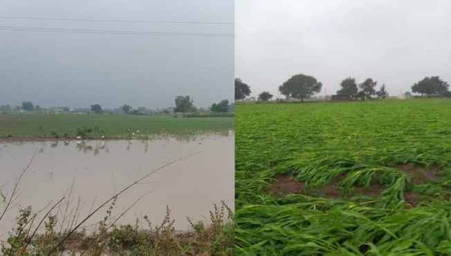 हिंगोली जिल्हयात रविवारी मध्यरात्री पासून विजेच्या कडकडाटासह जोरदार पाऊस सुरु आहे. या पावसामुळे अनेक ठिकाणी नदी, नाले भरून वाहू लागले आहेत. तूर, गहू या पिकांसाठी पाऊस फायदेशीर असला तरी हरभरा पिकाला या पावसाचा फटका बसणार आहे. या शिवाय संत्रा, मोसंबी बागांचे नुकसान झाल्याचे शेतकऱ्यांनी सांगितले.