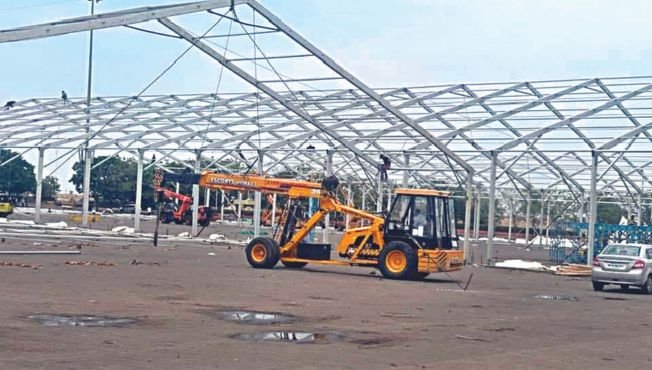 बाबाजी लॉन मंगल कार्यालयाच्या हॉलवरील पत्र्यांचे नुकसान
