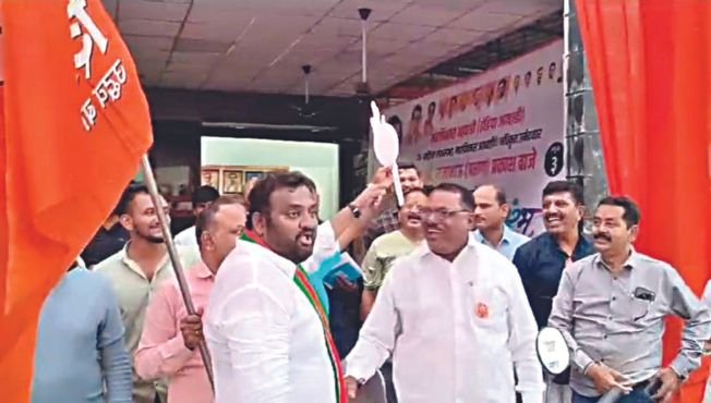 सोमवारी (दि. १३) महायुतीच्या रॅलीचे आयोजन करण्यात आले होते. रॅली ही उमेदवार राजाभाऊ वाजे यांच्या उत्तमनगर येथील भोळे कार्यालयाजवळील मंगल संपर्क कार्यालयाजवळ आली असता तेथे उपस्थित असलेल्या महाविकास आघाडीच्या पदाधिकारी व कार्यकर्त्यांनी घोषणा देत महायुतीच्या उमेदवारांना खुन्नस दिली होती. त्याला प्रत्युत्तर म्हणून भाजपचे माजी नगरसेवक मुकेश शहाणे यांनी महाविकास आघाडीच्या संपर्क कार्यालयात धाव घेत जाब विचारण्याचा प्रयत्न केला. त्यावेळी ठाकरे गटाचे पदाधिकारी रमेश उघडे यांना म्हणाले की, घरात भाजपचे नगरसेवक असताना मशाल मशाल काय करता? असे म्हणत त्यांच्या हातातील मशाल खाली पाडली. या प्रकरणी ठाकरे गटाचे भूषण भामरे यांनी अंबड पोलिस ठाण्यात शहाणे यांच्या विरोधात फिर्याद देऊन गुन्हा दाखल करण्यात आला आहे.