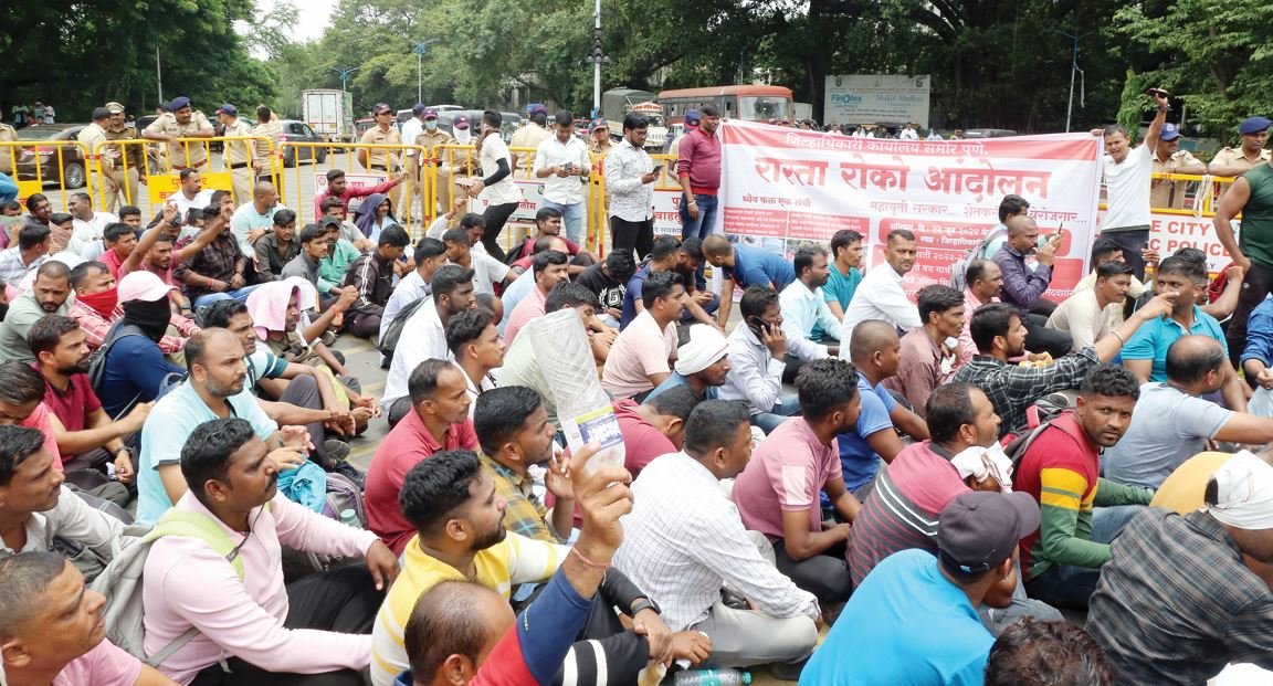 जिल्हाधिकारी कार्यालयाजवळ विद्यार्थ्यांचे आंदोलन सुरू असून, शनिवारी युवक काँग्रेसच्या पदाधिकारी आणि विद्यार्थ्यांनी रस्त्यावर उतरून सरकारच्या विरोधात रोष व्यक्त केला. या वेळी आमदार रवींद्र धंगेकर यांनी उपस्थित राहून विद्यार्थ्यांसमवेत रस्त्यावर ठाण मांडले होते. दरम्यान, सरकारने दिलेले आश्वासन पाळले पाहिजे, संधी मिळेपर्यंत आम्ही मागे हटणार नाही, न्याय द्या, न्याय द्या फडणवीस साहेब न्याय द्या, या घोषणांनी पोलिस भरती तयारी करणार्या विद्यार्थ्यांनी परिसर दणाणून सोडला.