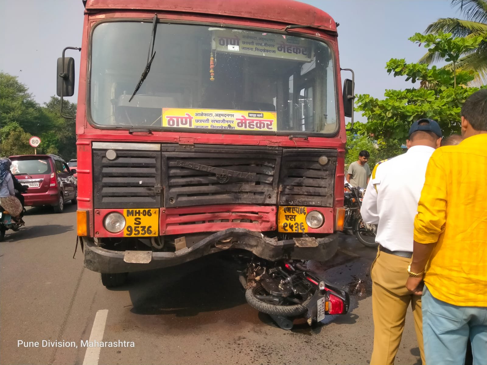 Accident News : वेगवान दुचाकीची एसटी बसला धडक