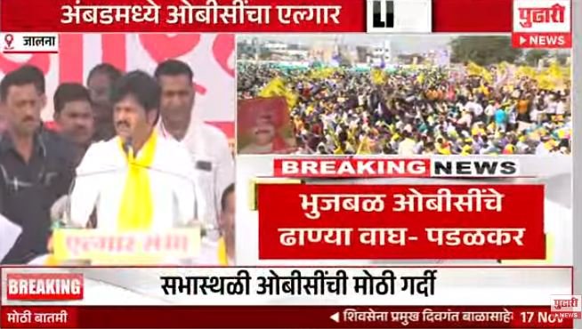 जालना जिल्ह्यातील ओबीसी एल्गार मेळाव्यास मंत्री छगन भुजबळ, महादेव जानकर, विरोधी पक्षनेते विजय वडेटीवार, गोपीचंद पडळकर आदी मान्यवराची उपस्थिती आहे. या मेळाव्यास माजी मंत्री पंकजा मुंढे या गैरहजर राहिल्याने अनेकांच्या भुवया उंचावल्या आहेत. कार्यक्रमापूर्वी माध्यमांशी बोलताना गोपीचंद पडळकर यांनी ओबीसी समाजाच्या आरक्षणाला धक्का न लावता मराठा समाजाला आरक्षण द्यावे असे सांगितले. ओबीसी सर्वच प्रश्ना बाबत सरकारकडून हालचाल व्हावी, अशी भावना व्यक्त केली. मंत्री छगन भुजबळ यांच्यासह मान्यवरांच्या हस्ते मशाल उंचावून ओबीसी आरक्षणाचा एल्गार करण्यात आला.