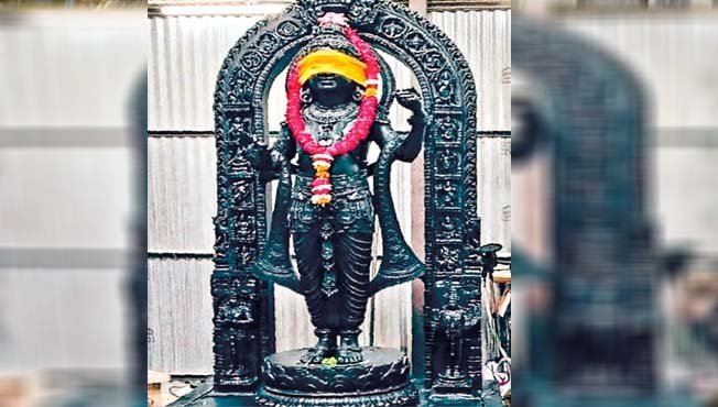 श्री रामलल्ला उजव्या हाताने आशीर्वाद देत आहेत.
