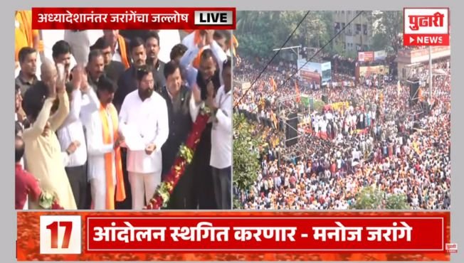 #WATCH | Maratha quota activist Manoj Jarange Patil to end his fast today in the presence of Maharashtra CM Eknath Shinde after the government accepted demands, in Navi Mumbai pic.twitter.com/ogLqes3wHL