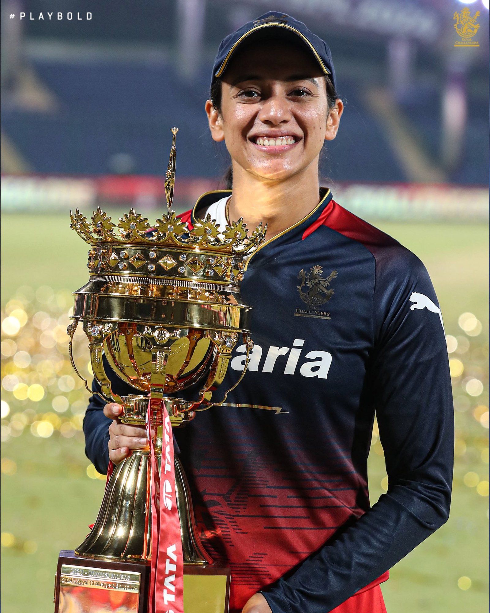 स्मृती मानधनाच्या नेतृत्वाखालील रॉयल चॅलेंजर्स बेंगळूर संघाने रविवारी महिला प्रीमियर लीगचे जेतेपद पटकावले. तब्बल 16 वर्षानंतर आरसीबीला चषक उंचावता आला आहे. विराट कोहली कर्णधार असताना आरसीबीला चषक उंचावता आला नव्हता पण आता स्मृती मानधनाने आरसीबीचा चषकाचा दुष्काळ संपवला आहे. आरसीबीच्या विजयानंतर देशभरात तसेच सोशल मीडियावर चाहत्यांनी एकच जल्लोष केला.