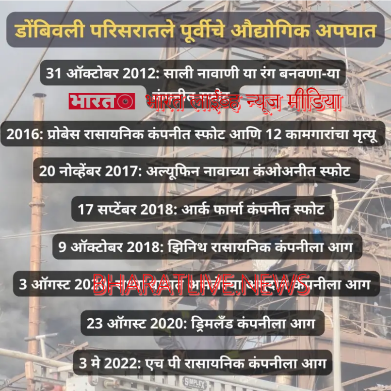 ‘लोकसत्ता’ या दैनिकानं शुक्रवार 24 मे 2024 च्या अंकात गेल्या 10 ते 15 वर्षांच्या काळात या डोंबिवली औद्योगिक वसाहतीत प्रामुख्यानं रासायनिक कंपन्यांमध्ये झालेल्या अपघातांची यादी प्रसिद्ध केली आहे.