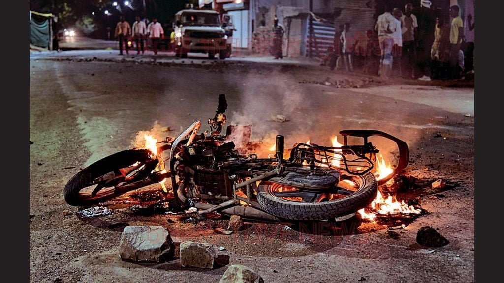 पोलिसांनी दाखल केलेल्या एफआयआर नुसार या सगळ्यांनी, ‘जय श्रीरामच्या घोषणा देत काठ्या, लोखंडी झाला, दगड हातात घेत हल्ला केला. पोलिसांवर, सरकारी वाहनावर देखील दगडफेक केली.’