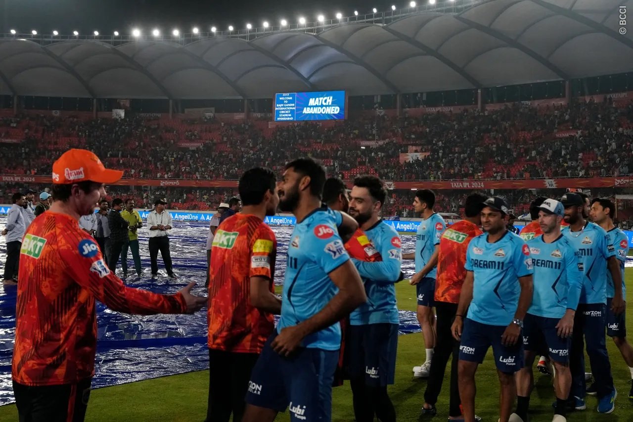 2024 च्या आयपीएल क्रिकेट स्पर्धेत सनरायझर्स हैदराबाद संघ प्लेऑफसाठी पात्र ठरला आहे. या स्पर्धेतील गुरुवारचा सनरायझर्स हैदराबाद आणि गुजरात टायटन्स यांच्यातील सामना एकही चेंडू न टाकताना पावसामुळे रद्द करावा लागला. या स्पर्धेत प्लेऑफसाठी पात्र ठरणारा सनरायझर्स हैदराबाद हा तिसरा संघ आहे. कोलकाता नाईट रायडर्स आणि राजस्थान रॉयल्स या दोन संघांनी यापूर्वीच प्लेऑफ गटातील आपले स्थान निश्चित केले होते. स्पर्धेच्या गुणतक्त्यात कोलकाता नाईट रायडर्स पहिल्या तर राजस्थान रॉयल्स दुसऱ्या स्थानावर आहे. सनरायझर्स हैदराबाद आणि गुजरात टायटन्स यांच्यातील रद्द झालेल्या सामन्यात दोन्ही संघांना प्रत्येकी 1 गुण देण्यात आला. हैदराबाद संघाने 15 गुण घेतले असून त्यांचा एक सामना बाकी आहे. हैदराबादचा शेवटचा सामना पंजाब किंग्ज बरोबर 19 मे रोजी होणार आहे. या स्पर्धेतील प्राथमकि फेरीतील हा शेवटचा सामना आहे. पंजाब संघाचे आव्हान यापूर्वीच समाप्त झाले आहे. 2022 साली आयपीएल स्पर्धा जिंकणारा तर 2023 साली आयपीएल स्पर्धेत उपविजेतेपद मिळविणाऱ्या गुजरात टायटन्स संघाचे प्लेऑफ शर्यतीतील आव्हान यापूर्वीच्या सामन्यात संपुष्टात आले होते. गुजरातचा 13 मे रोजीचा कोलकाता संघाबरोबरचा सामना पावसामुळे वाया गेला होता. गुजरात टायटन्सने 2024 च्या आयपीएल स्पर्धेत 14 सामन्यातून 12 गुणासह आपली मोहित संपुष्टात आणली.