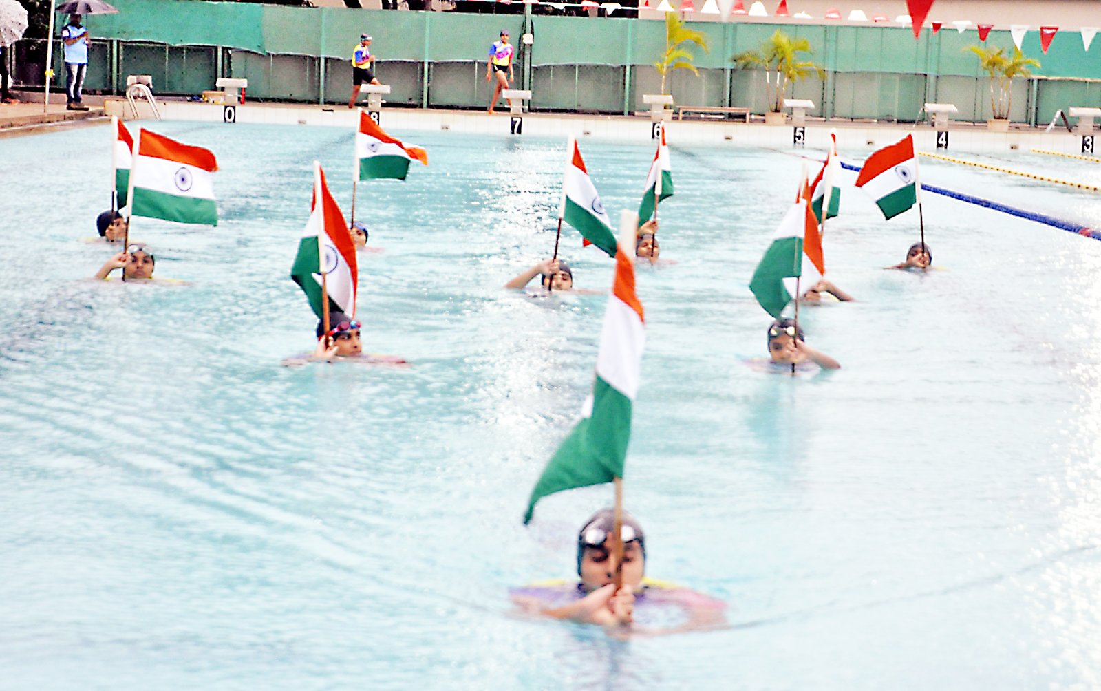 यशराज व अनिश यांनी 50 मीटर पाण्याच्या खालून पोहत सर्वांचे मन वेधून घेतले. सुनिधी समृद्धी व अनन्या यांनी कपाळावरती पाण्याचे ग्लास ठेवून बॅकस्ट्रोकमध्ये आपली प्रात्यक्षिके सादर केली. समीक्षा, वेदांत, अभिनव, अथर्व, सार्थक, सुनिधी, समृद्धी, सिद्धांत व गीता या सर्व जलतरणपटूंनी वीरभद्रासन, ताडासन, वक्रासन, हनुमानासन, त्रिकोणासन डावी व उजवीकडे सादर केले. त्याचप्रमाणे काडासन, बडकासन, पद्मासन, पर्वतासन, पवन मुक्तासन, शवासन, निद्रासन, व्हर्टीकल नमस्ते आदी आसने सादर करून आपले कौशल्य दाखवून दिले. यावेळी ही आसने पाहून उपस्थित प्रेक्षकांनी टाळ्यांच्या गजरात या सर्व जलतरणपटूंचे कौतुक केले. या जलतरणपटूंनी सर्कलमध्ये जलतरण, जलद फिरणे, बॅकस्ट्रोक पद्धतीचे प्रकार, फ्लायकीक, पाण्याखाली वर जाणे व बाहेर येणे व फ्लोअरकीक आदी प्रकार सादर केले. यावेळी अंध जुळ्या भावांनीसुद्धा जलतरणाची प्रकार सादर करून सर्वांची मने जिंकली.