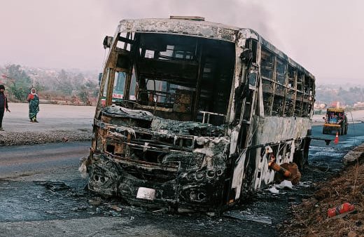 संकेश्वरनजीक बर्निंग बसचा थरार